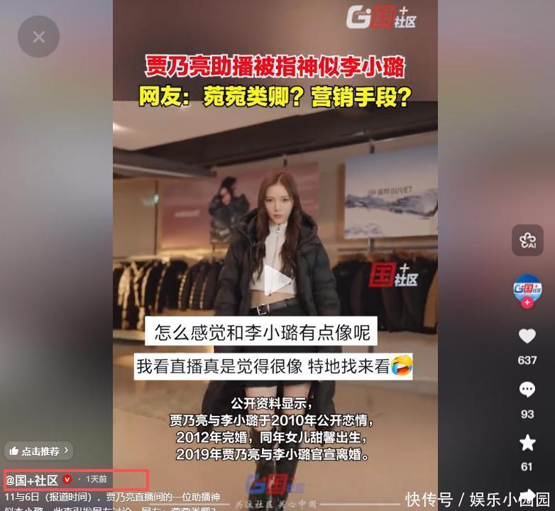信息来源国+社-11-06《贾乃亮助播被指神似李小璐网友:菀菀类卿营销手段》
